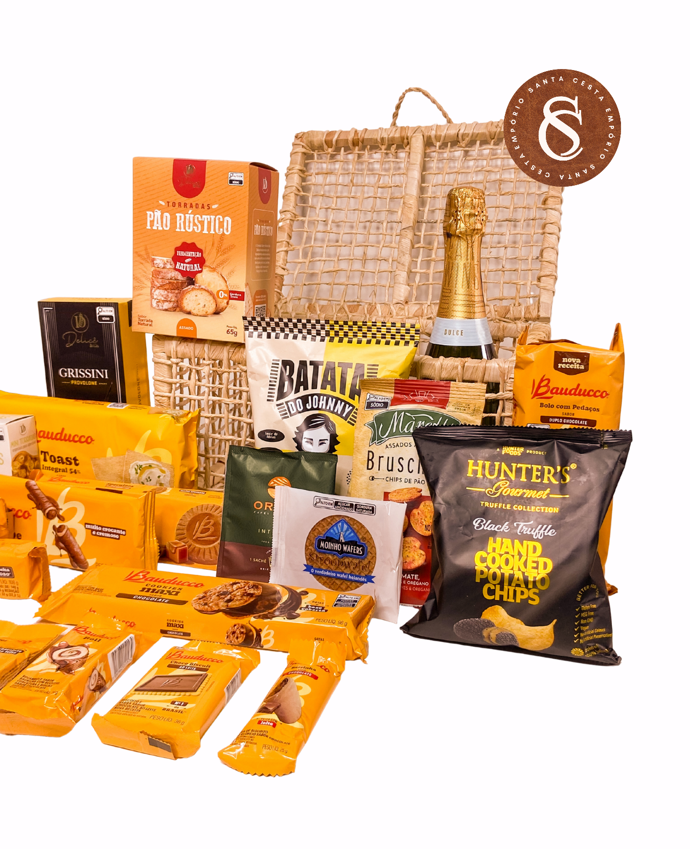 Um presente pensado para surpreender com requinte e variedade, reunindo marcas reconhecidas e sabores especiais em uma apresentação elegante.