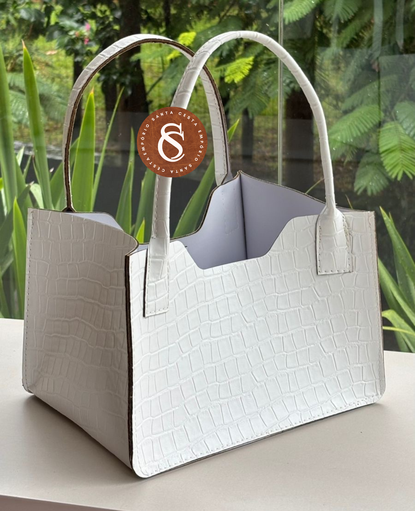 || bolsa de couro sintético branco com textura