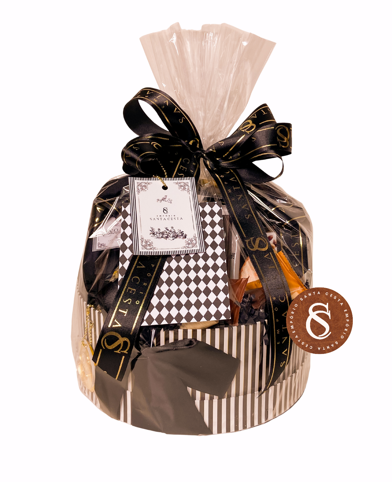 || finalizada com celofane, laço e tag