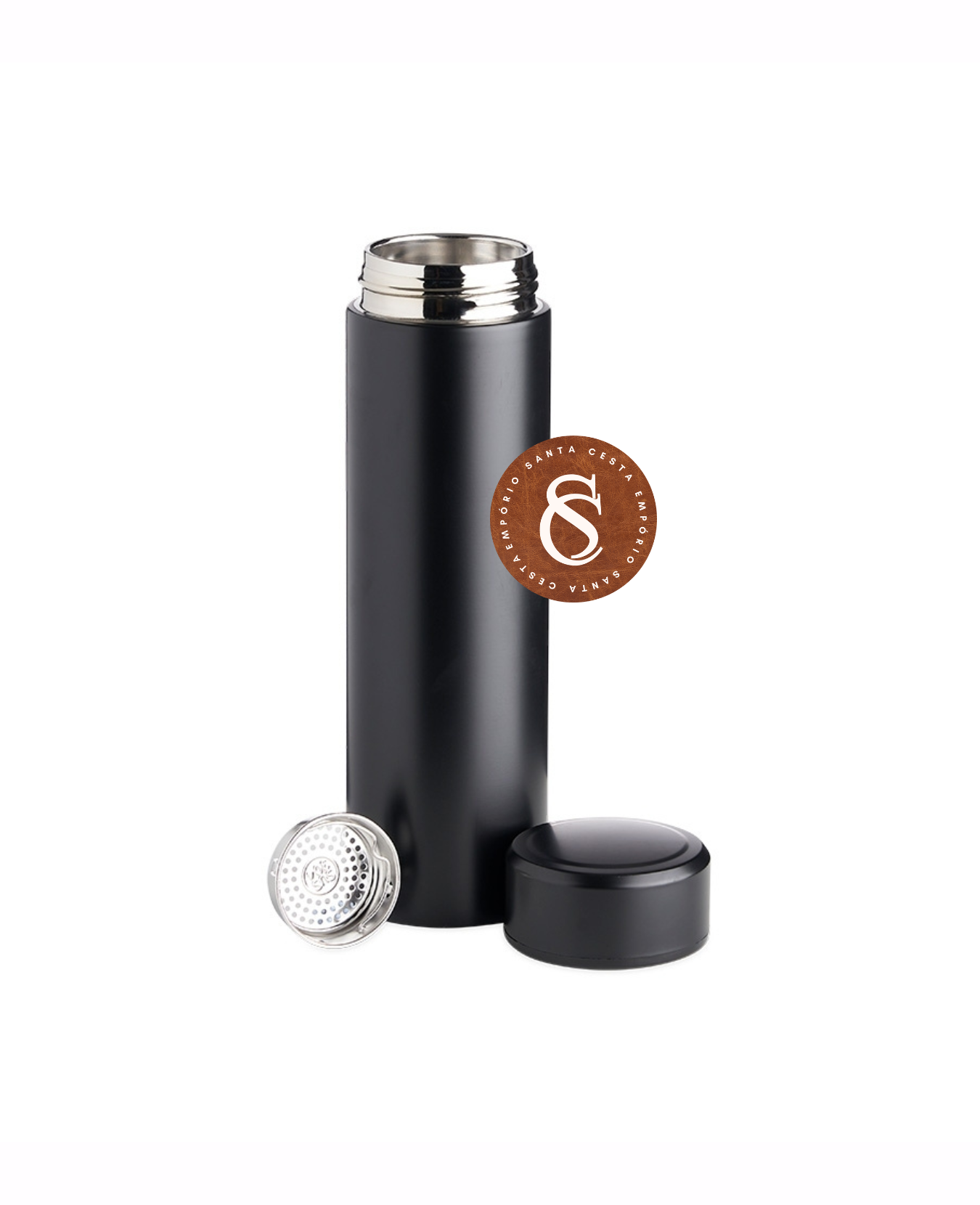 Garrafa térmica 500ml feita em aço inoxidável 304, acompanha infusor de bebidas.