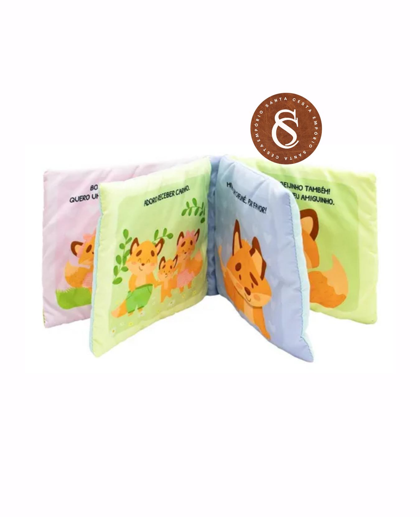 Livro de pano com capa de barulho crepitante. Páginas macias e aconchegantes.