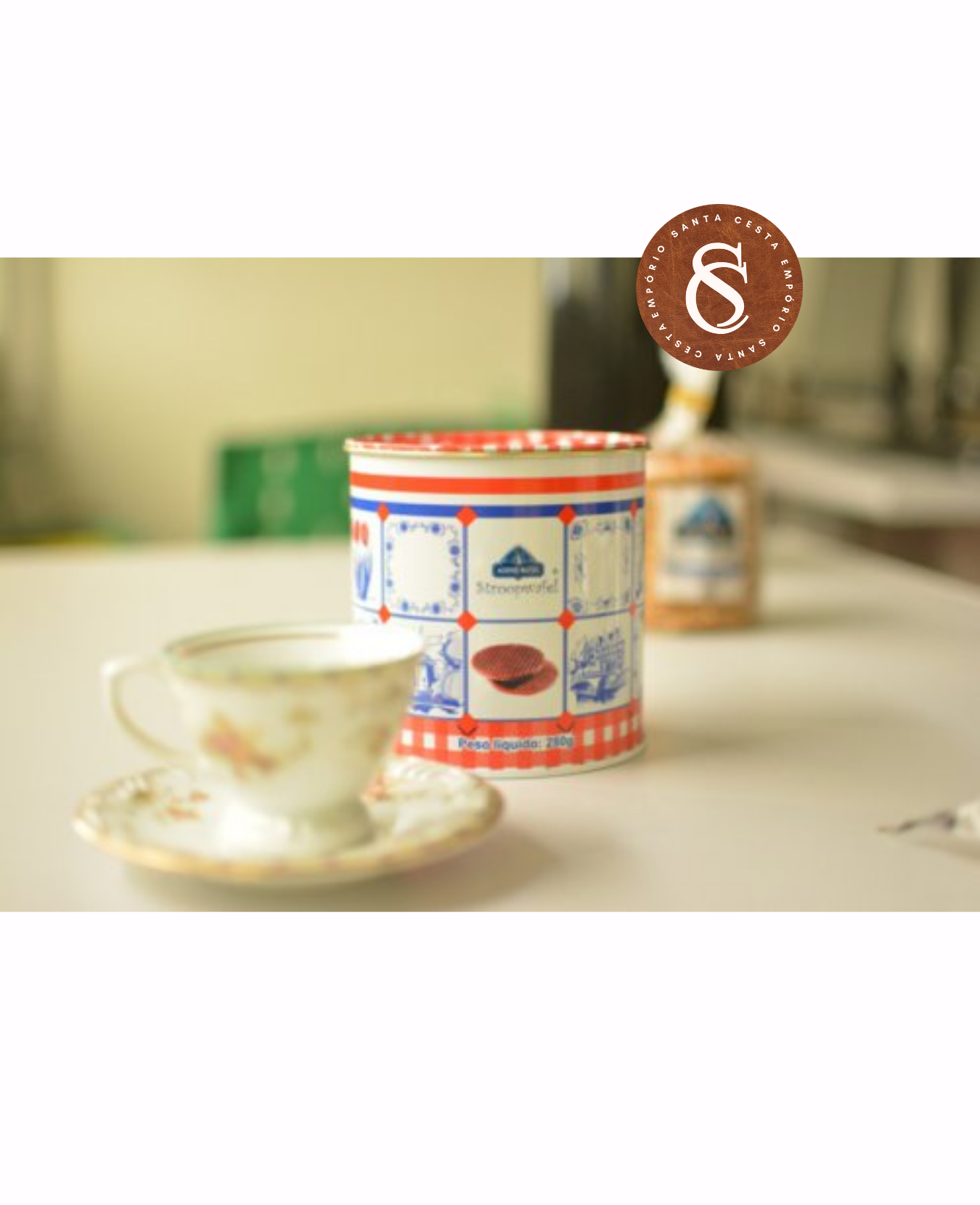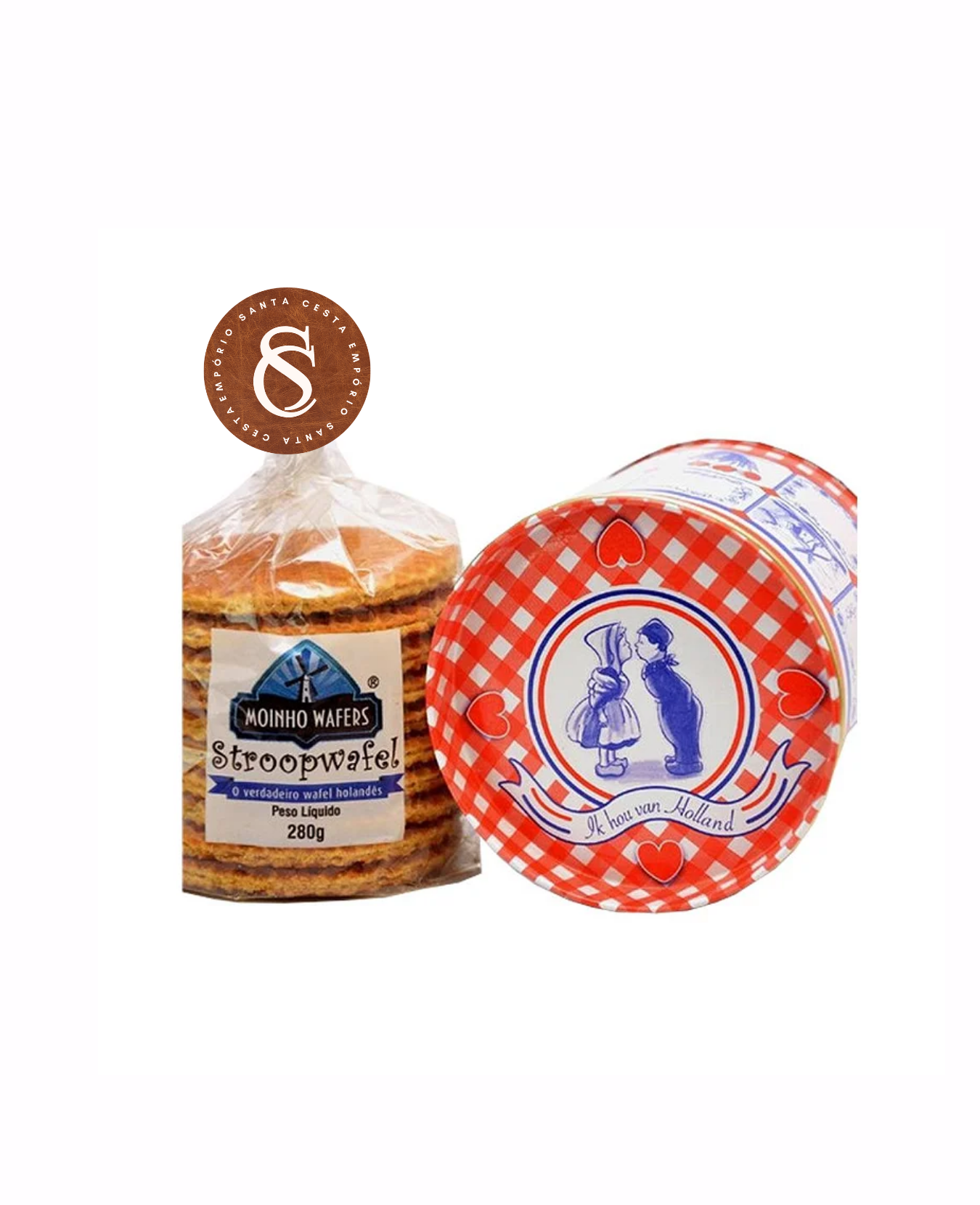 Clássico holandês irresistível, o stroopwafel é composto por duas finas camadas de waffle crocante recheadas com um delicioso caramelo macio e aromático. Perfeito para acompanhar cafés e chás, pode ser aquecido levemente sobre a xícara para realçar ainda mais seu sabor. A embalagem em lata preserva a textura e o frescor, além de trazer charme e praticidade para presentear.