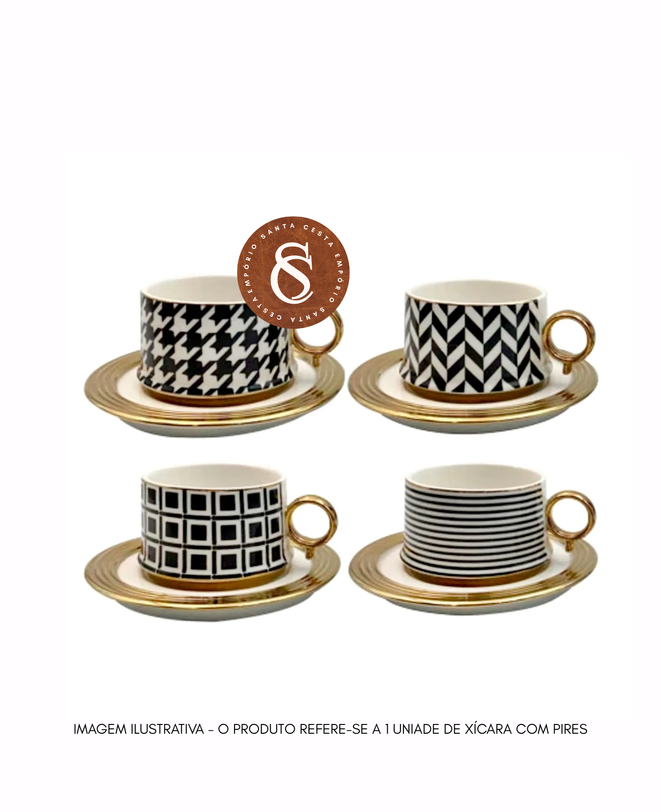 XÍCARA DE CAFÉ COM PIRES PRETO, BRANCA E DOURADO 100ML